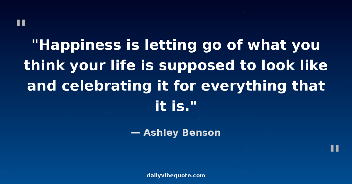 "Happiness is letting go of what you think your life is supposed to look like and celebrating it for everything that it is."