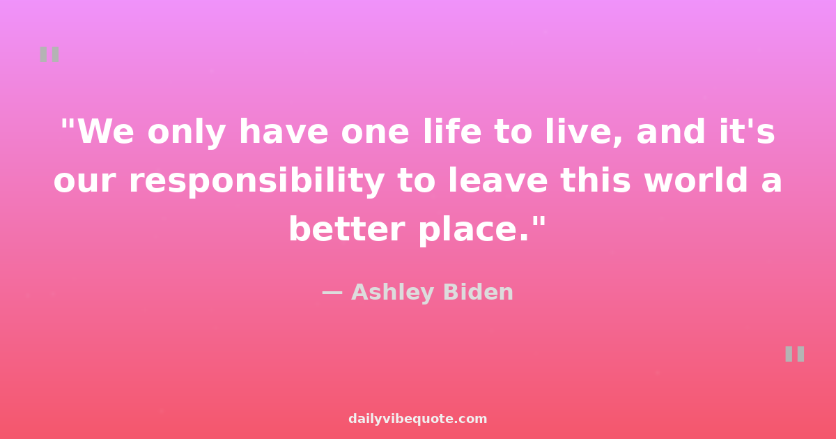"We only have one life to live, and it's our responsibility to leave this world a better place."