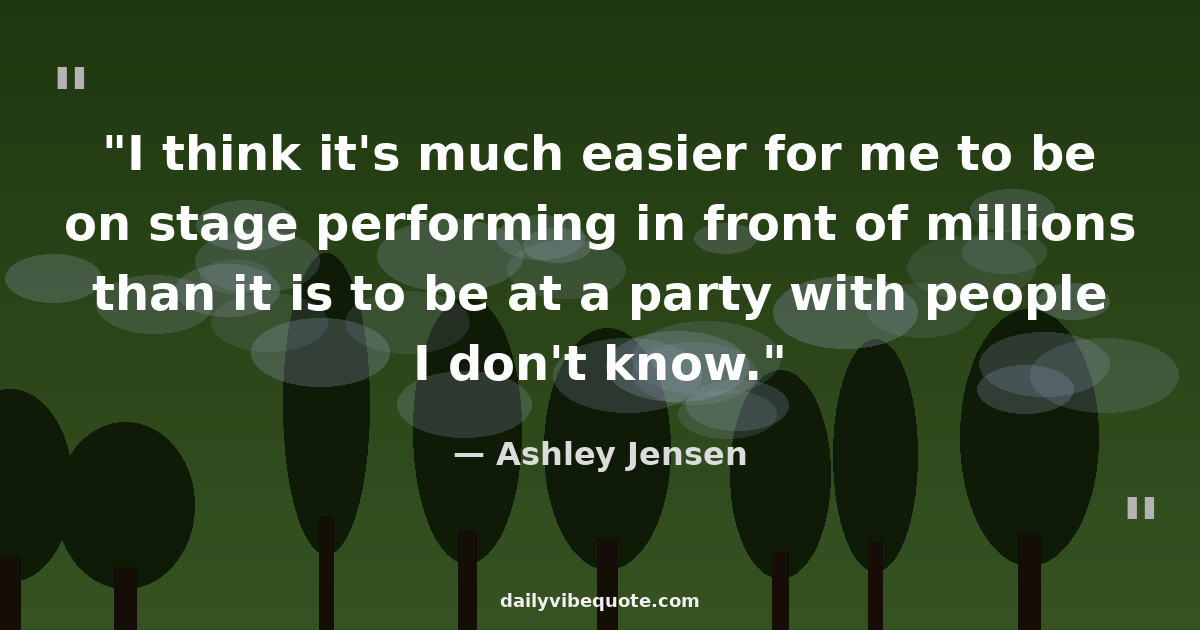 "I think it's much easier for me to be on stage performing in front of millions than it is to be at a party with people I don't know."