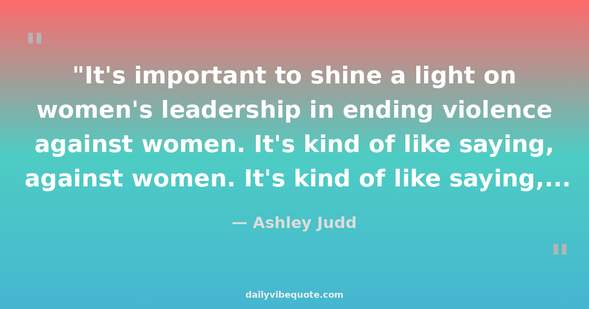 "It's important to shine a light on women's leadership in ending violence against women. It's kind of like saying, 'Who's going to save men from their lives?' So men have to save men, and women have to save women."