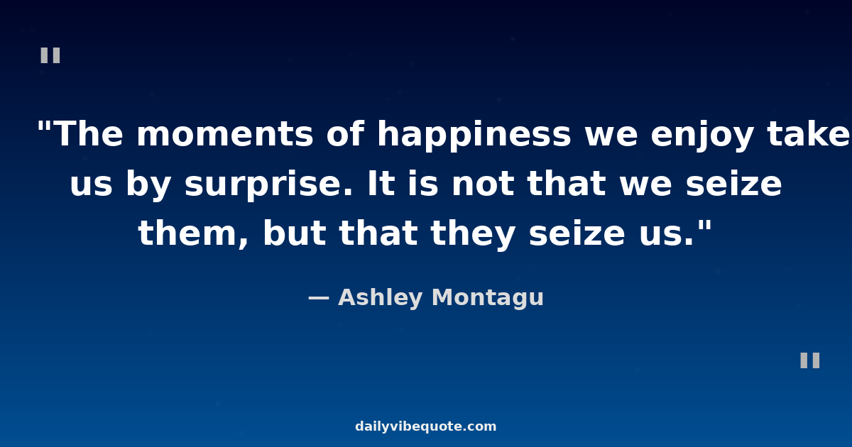 "The moments of happiness we enjoy take us by surprise. It is not that we seize them, but that they seize us."