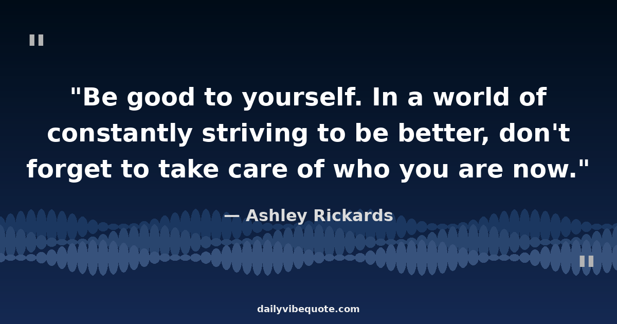 "Be good to yourself. In a world of constantly striving to be better, don't forget to take care of who you are now."