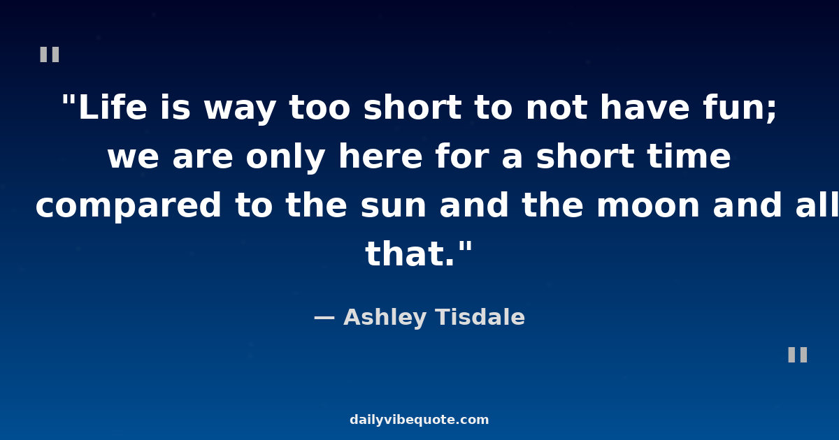 "Life is way too short to not have fun; we are only here for a short time compared to the sun and the moon and all that."