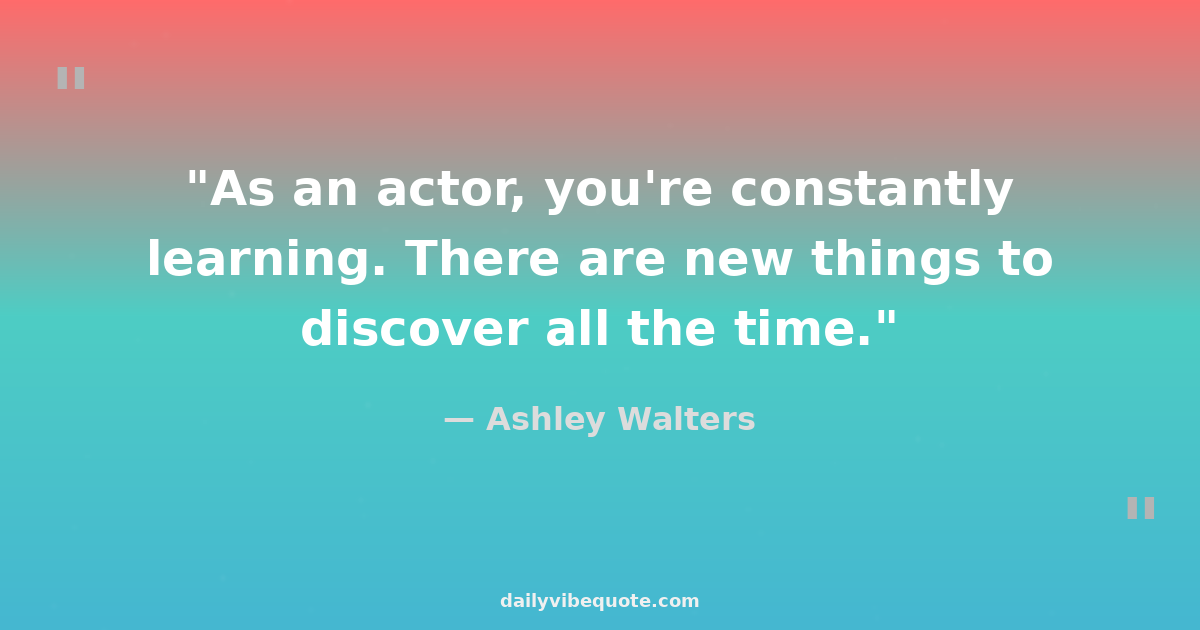 "As an actor, you're constantly learning. There are new things to discover all the time."