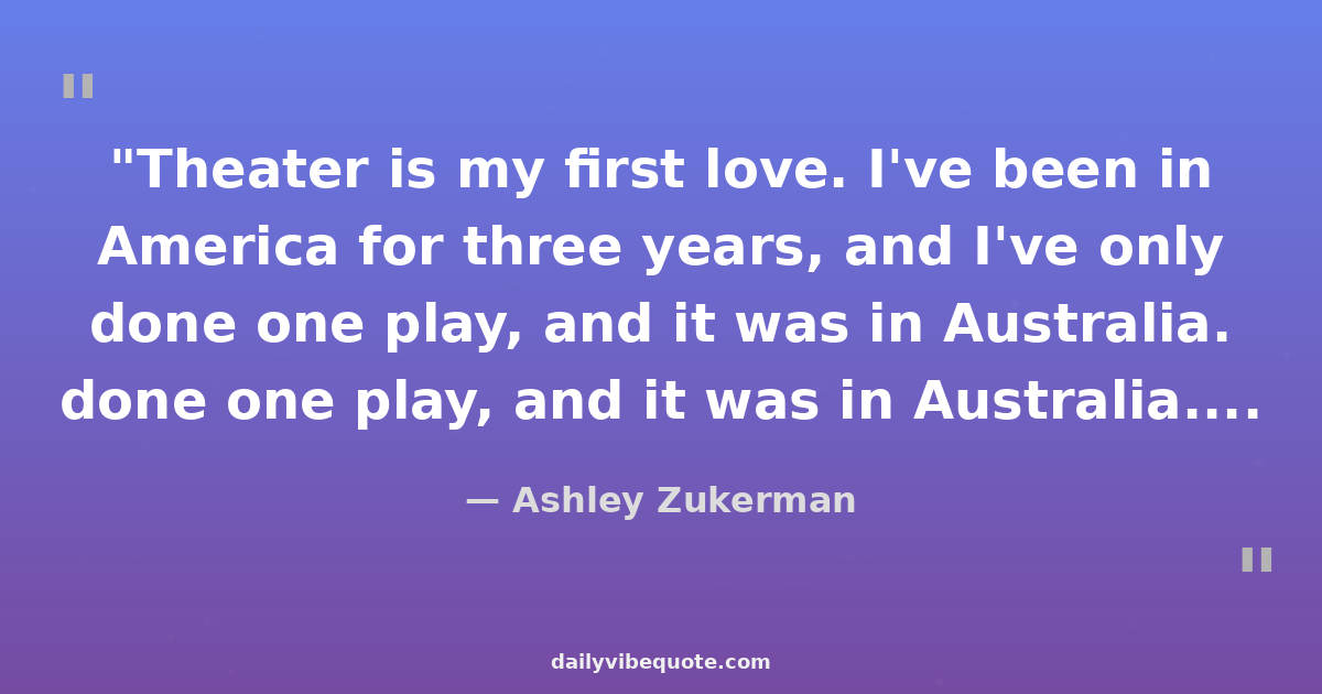 "Theater is my first love. I've been in America for three years, and I've only done one play, and it was in Australia. There's something about the life of a play that speaks to me."