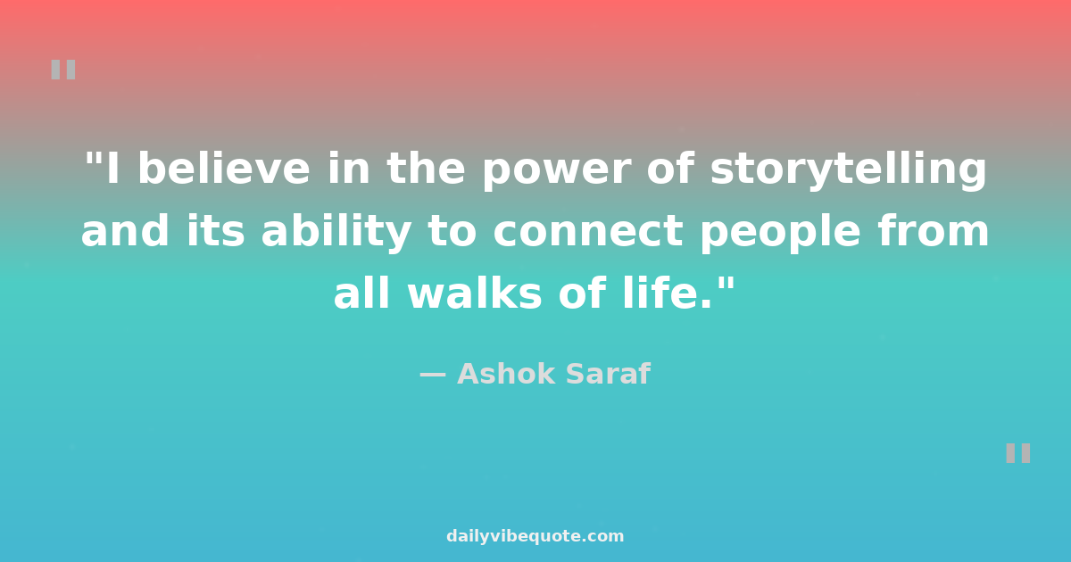 "I believe in the power of storytelling and its ability to connect people from all walks of life."
