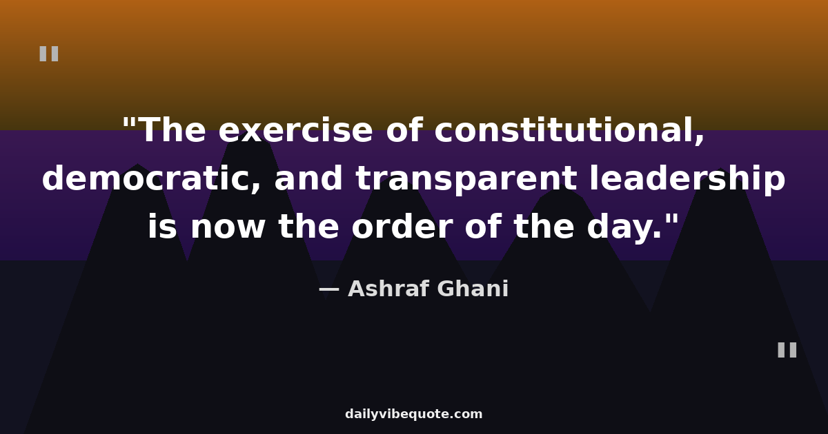 "The exercise of constitutional, democratic, and transparent leadership is now the order of the day."