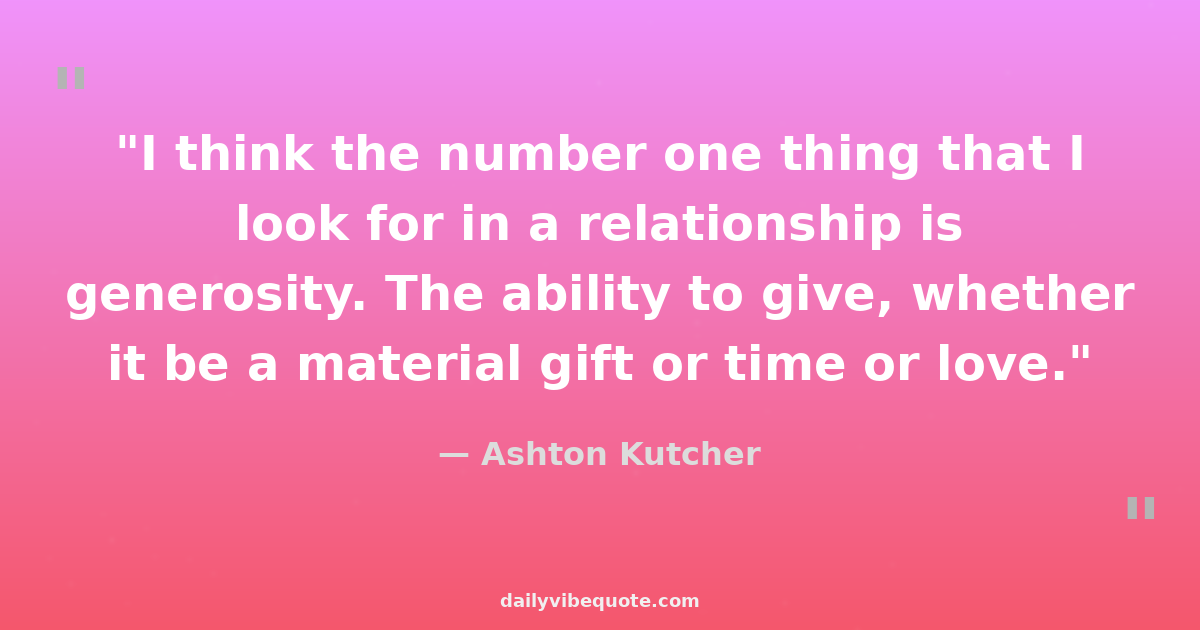"I think the number one thing that I look for in a relationship is generosity. The ability to give, whether it be a material gift or time or love."