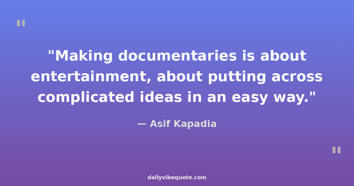 "Making documentaries is about entertainment, about putting across complicated ideas in an easy way."