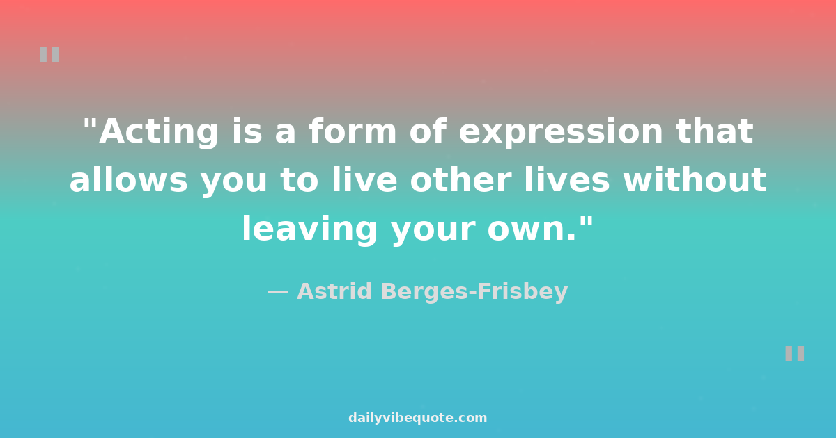 "Acting is a form of expression that allows you to live other lives without leaving your own."