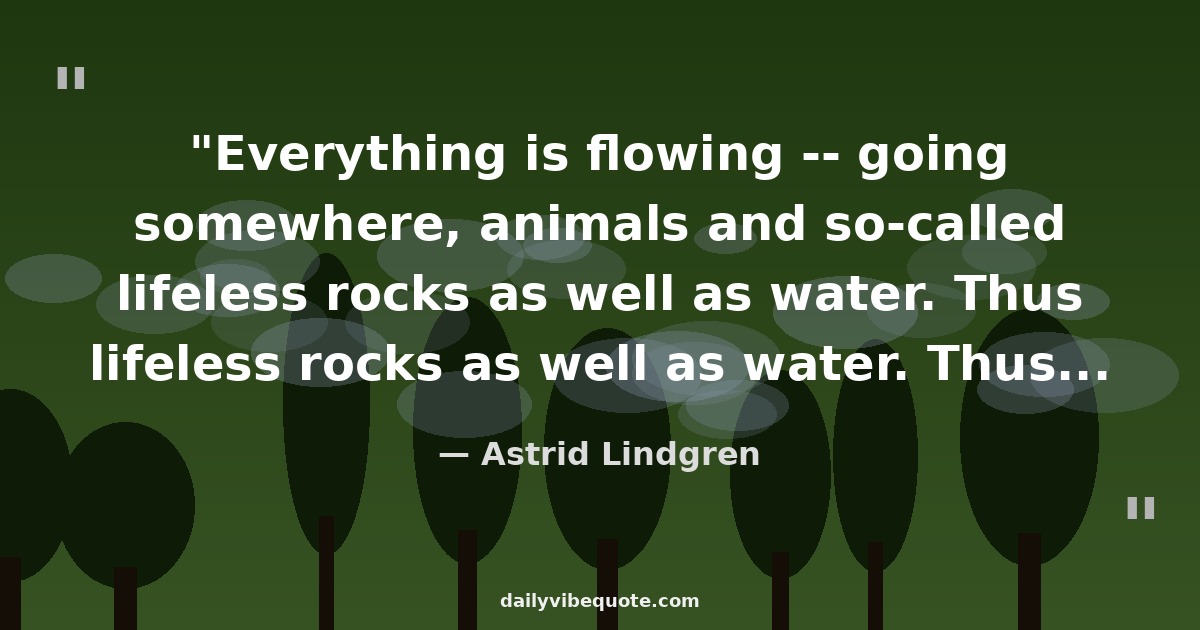 "Everything is flowing -- going somewhere, animals and so-called lifeless rocks as well as water. Thus the snow flows fast or slow in grand beauty-making glaciers and avalanches; the air in majestic floods carrying minerals, plant leaves, seeds, spores, with streams of music and fragrance; water streams carrying rocks, pebbles, sand, to form beaches and canyons of grand beauty."