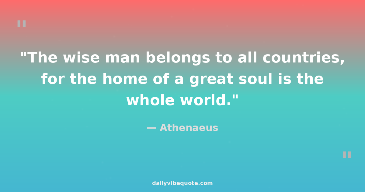 "The wise man belongs to all countries, for the home of a great soul is the whole world."