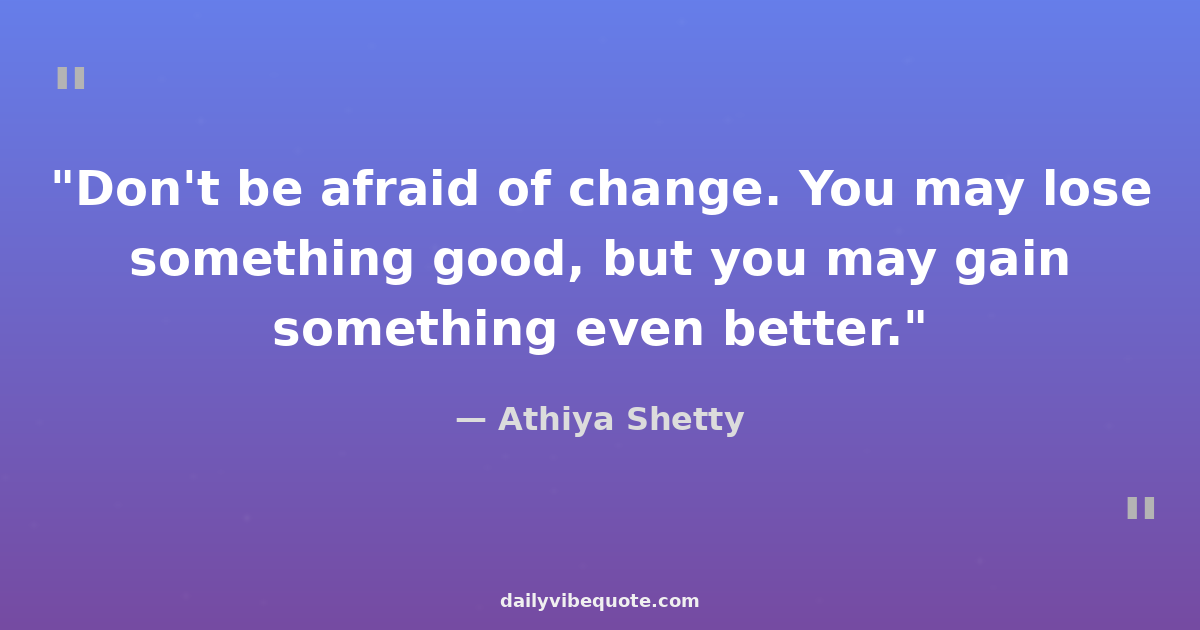 "Don't be afraid of change. You may lose something good, but you may gain something even better."