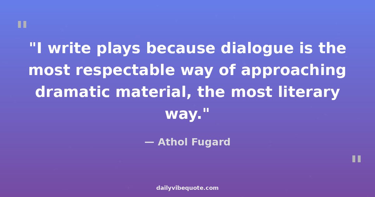 "I write plays because dialogue is the most respectable way of approaching dramatic material, the most literary way."