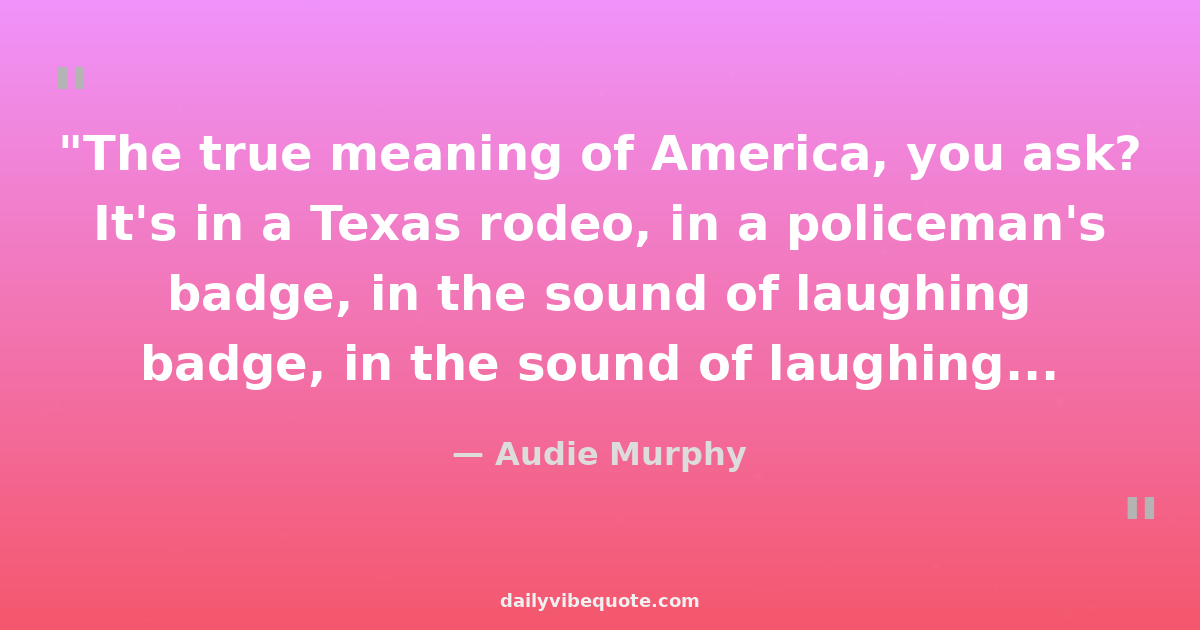 "The true meaning of America, you ask? It's in a Texas rodeo, in a policeman's badge, in the sound of laughing children, in a political rally, in a newspaper... In all these things, and many more, you'll find America."