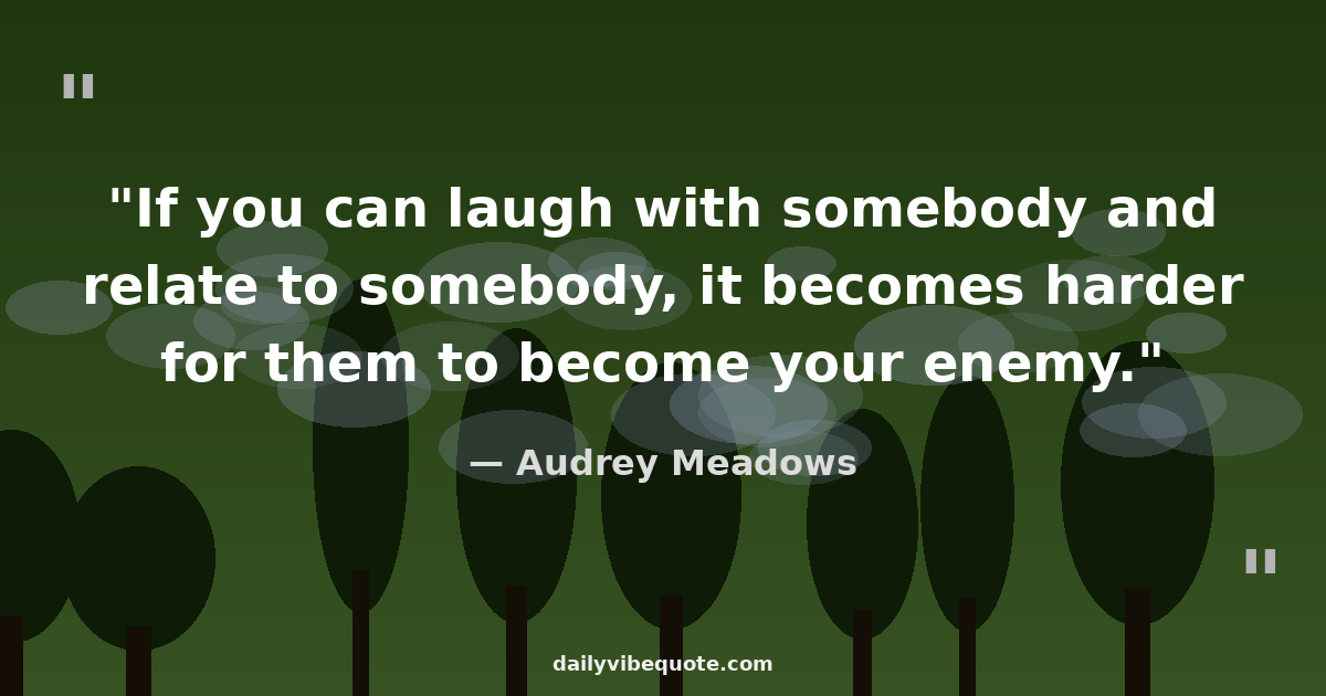 "If you can laugh with somebody and relate to somebody, it becomes harder for them to become your enemy."