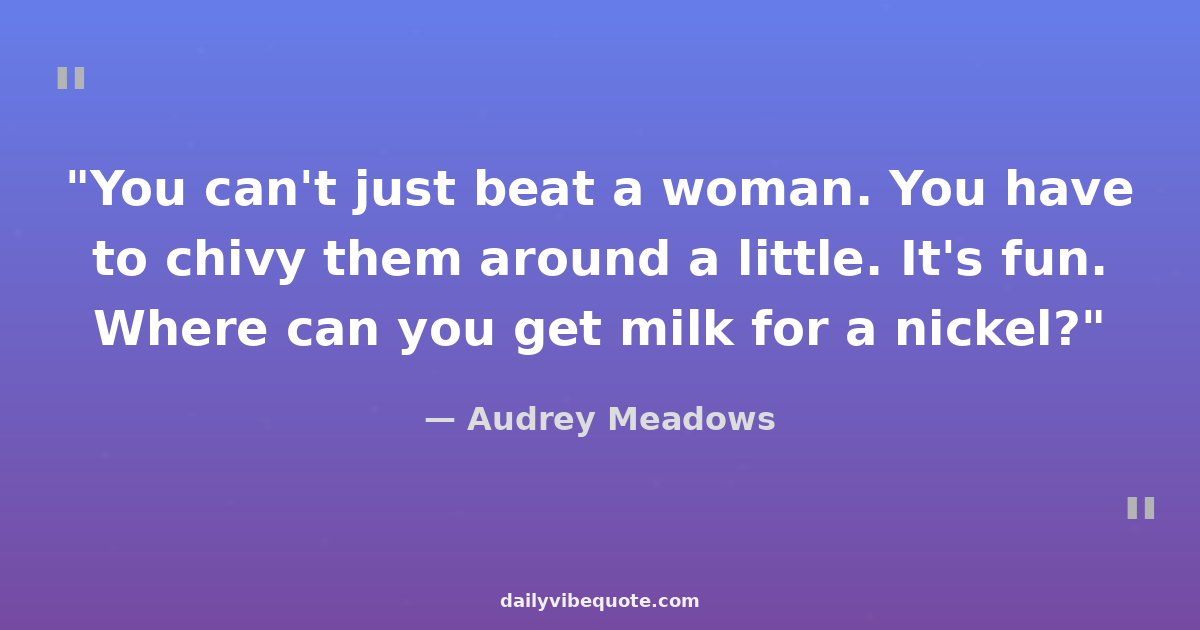 "You can't just beat a woman. You have to chivy them around a little. It's fun. Where can you get milk for a nickel?"