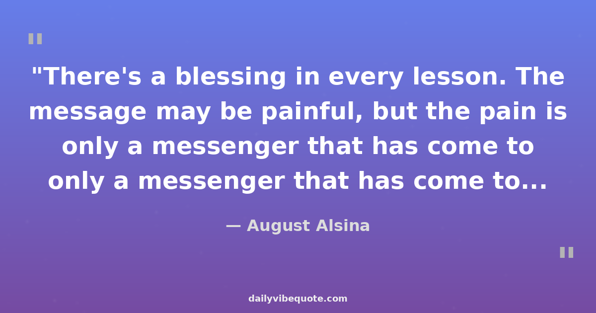 "There's a blessing in every lesson. The message may be painful, but the pain is only a messenger that has come to deliver you to your next great destination."