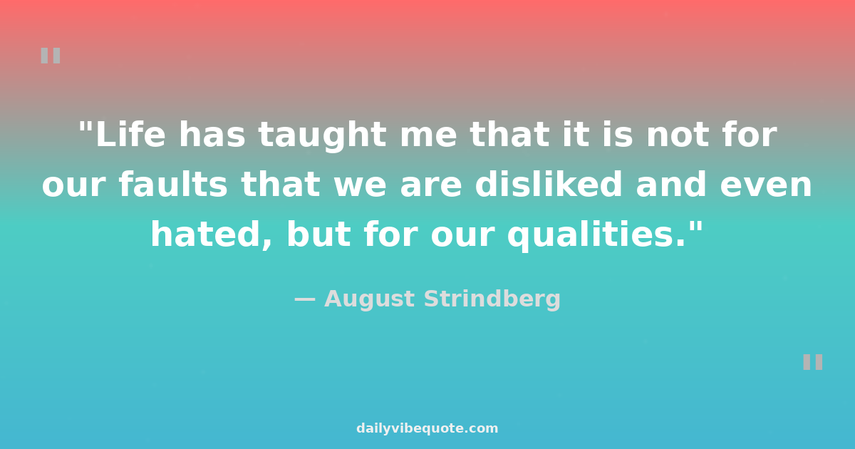 "Life has taught me that it is not for our faults that we are disliked and even hated, but for our qualities."
