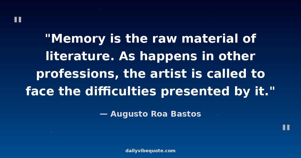 "Memory is the raw material of literature. As happens in other professions, the artist is called to face the difficulties presented by it."