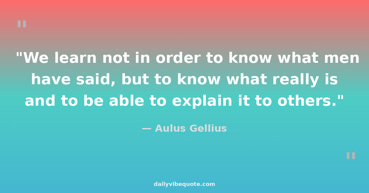 "We learn not in order to know what men have said, but to know what really is and to be able to explain it to others."