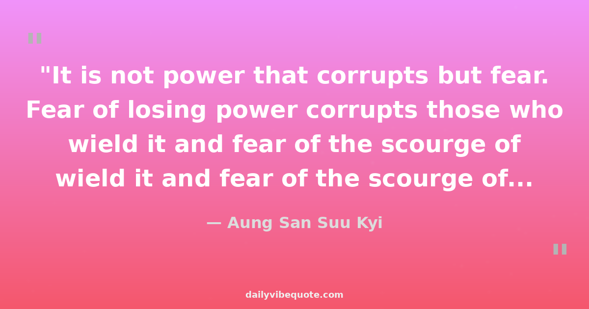"It is not power that corrupts but fear. Fear of losing power corrupts those who wield it and fear of the scourge of power corrupts those who are subject to it."