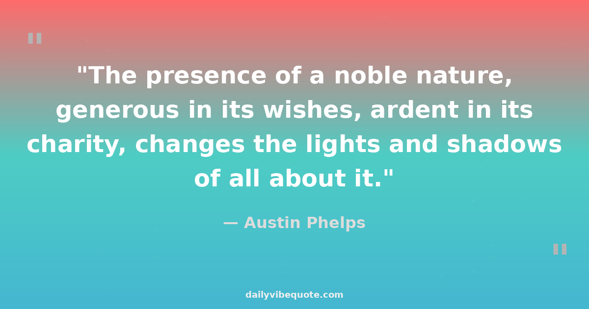 "The presence of a noble nature, generous in its wishes, ardent in its charity, changes the lights and shadows of all about it."