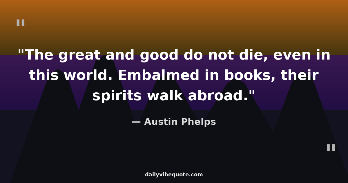 "The great and good do not die, even in this world. Embalmed in books, their spirits walk abroad."