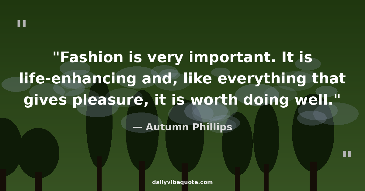 "Fashion is very important. It is life-enhancing and, like everything that gives pleasure, it is worth doing well."