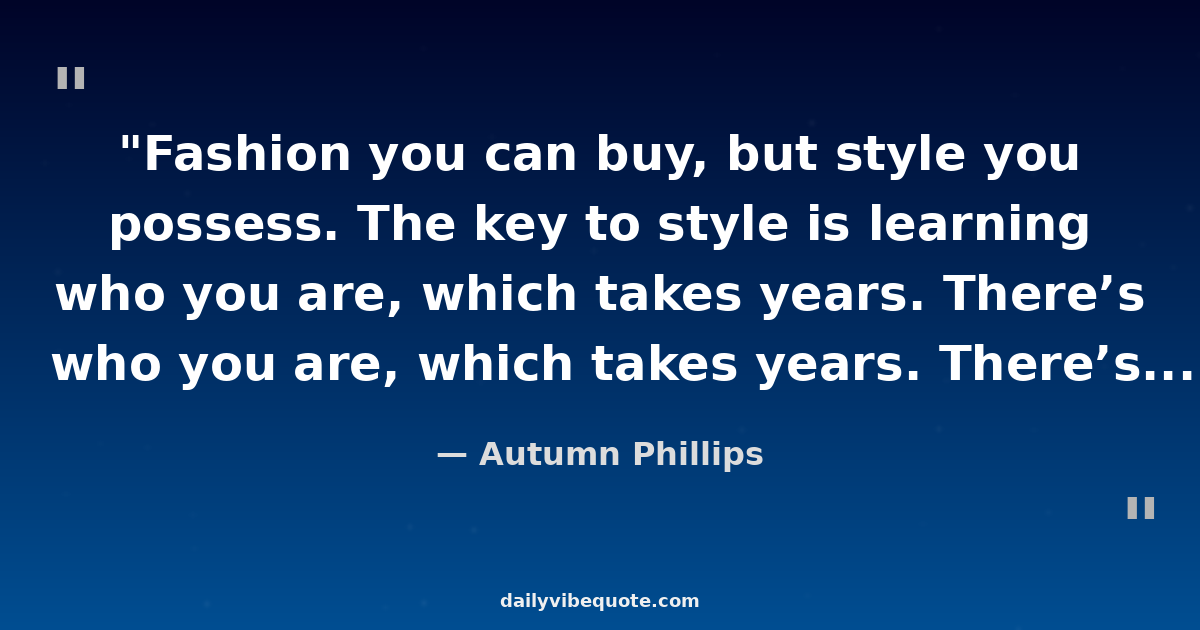 "Fashion you can buy, but style you possess. The key to style is learning who you are, which takes years. There’s no how-to road map to style. It’s about self-expression and, above all, attitude."