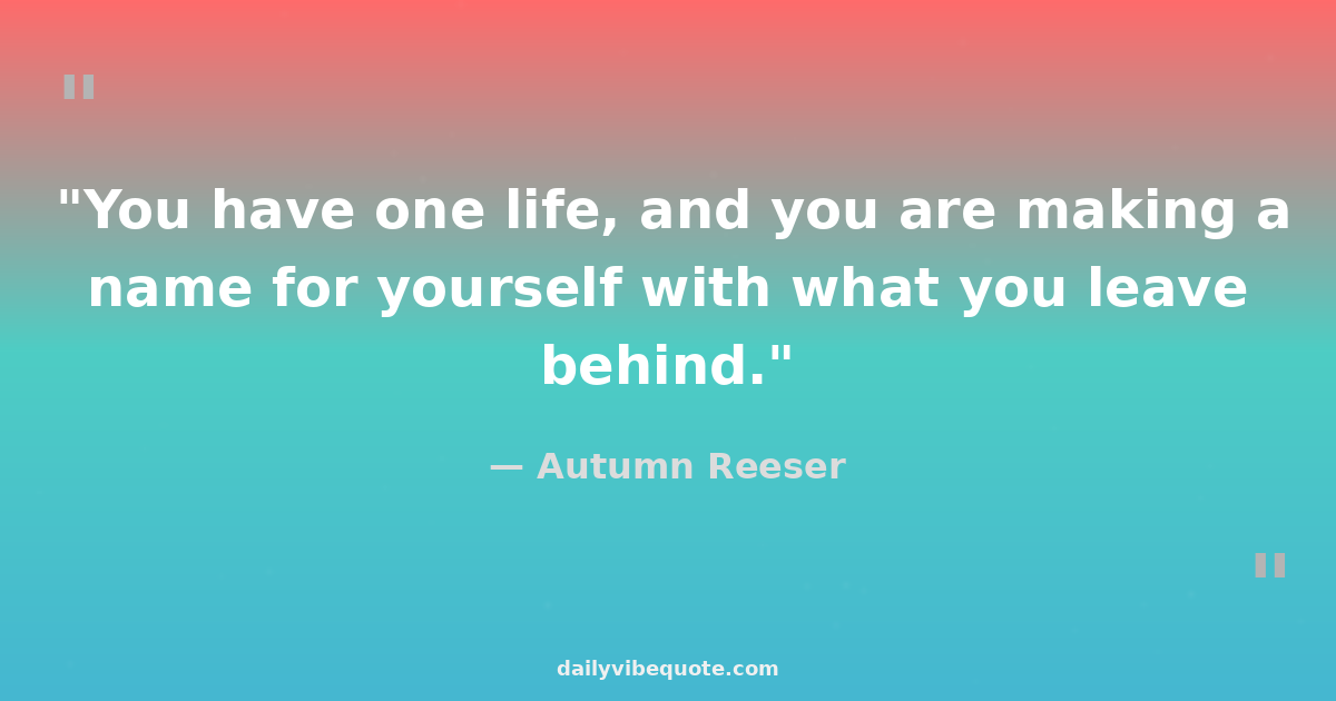 "You have one life, and you are making a name for yourself with what you leave behind."