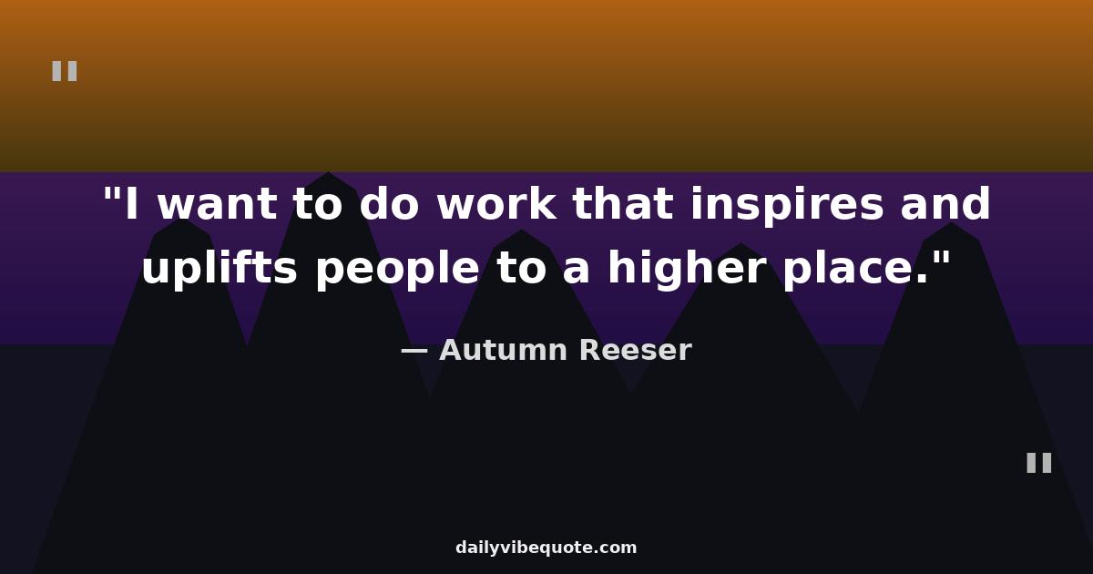 "I want to do work that inspires and uplifts people to a higher place."