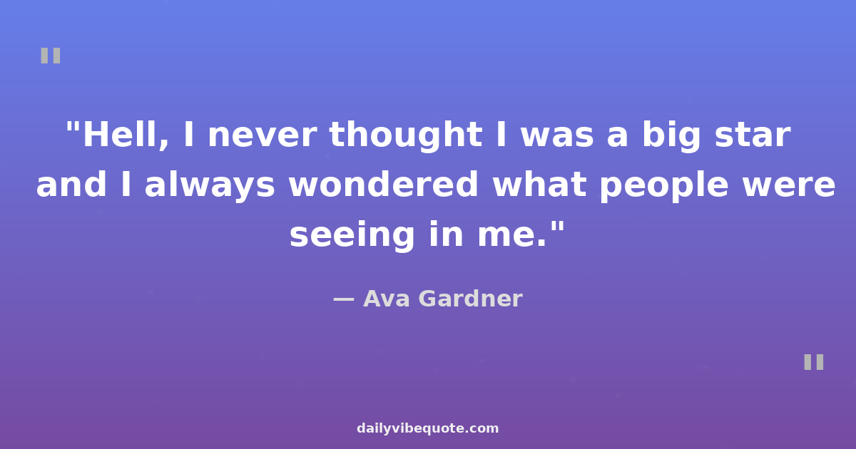 "Hell, I never thought I was a big star and I always wondered what people were seeing in me."