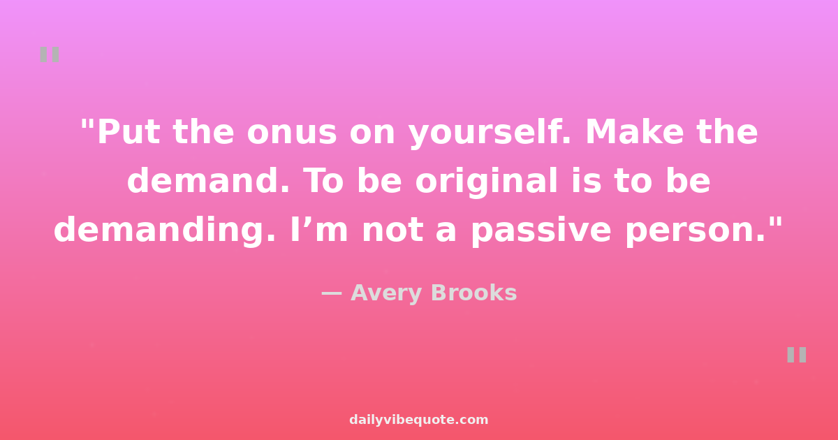 "Put the onus on yourself. Make the demand. To be original is to be demanding. I’m not a passive person."