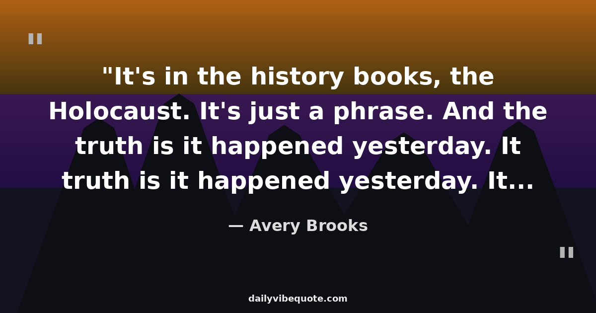 "It's in the history books, the Holocaust. It's just a phrase. And the truth is it happened yesterday. It happened to my mother. I never met my grandmothers or my grandfathers. They were all wiped up in the gas chambers of Nazi Germany."