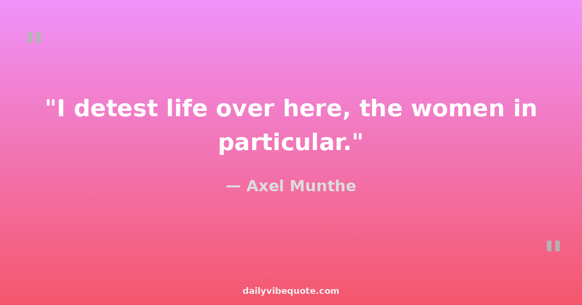 "I detest life over here, the women in particular."