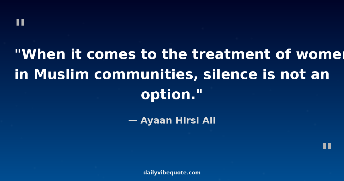 "When it comes to the treatment of women in Muslim communities, silence is not an option."
