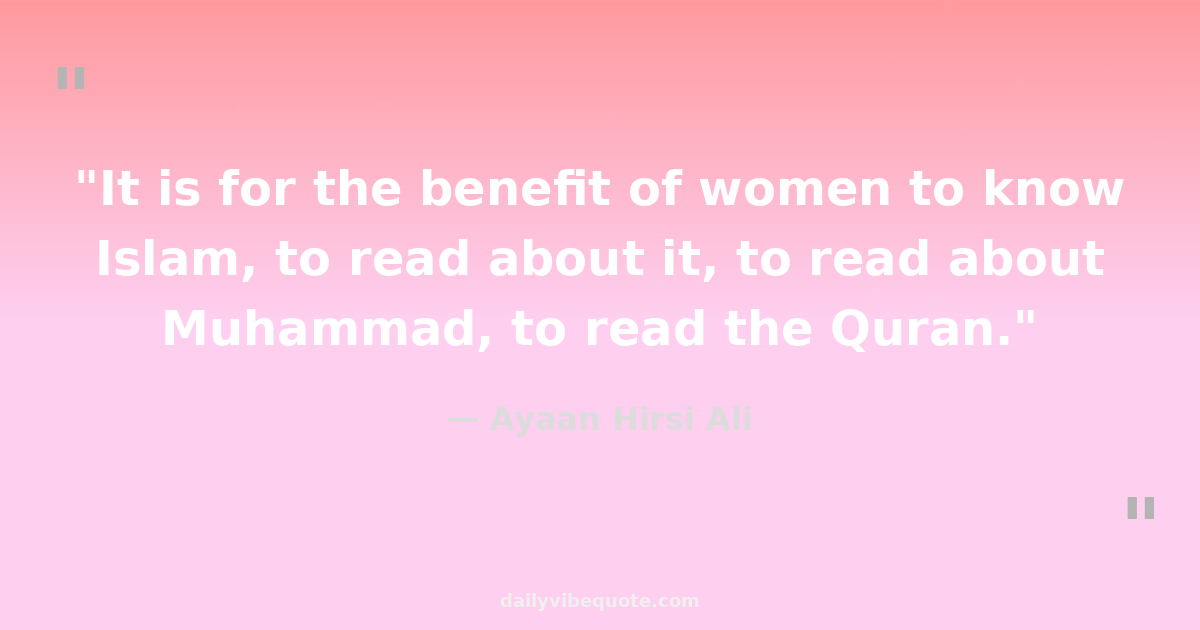 "It is for the benefit of women to know Islam, to read about it, to read about Muhammad, to read the Quran."