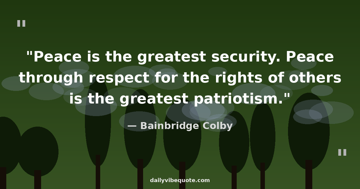 "Peace is the greatest security. Peace through respect for the rights of others is the greatest patriotism."