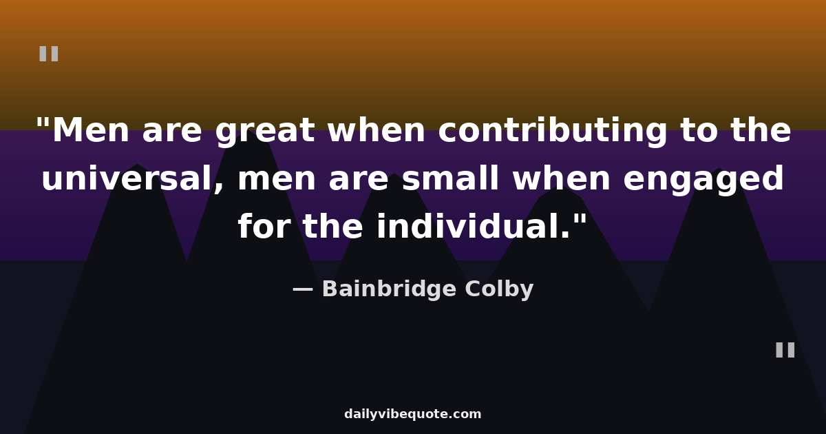 "Men are great when contributing to the universal, men are small when engaged for the individual."