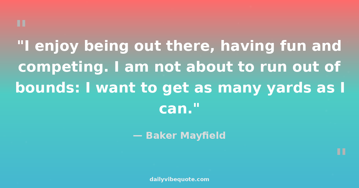 "I enjoy being out there, having fun and competing. I am not about to run out of bounds: I want to get as many yards as I can."