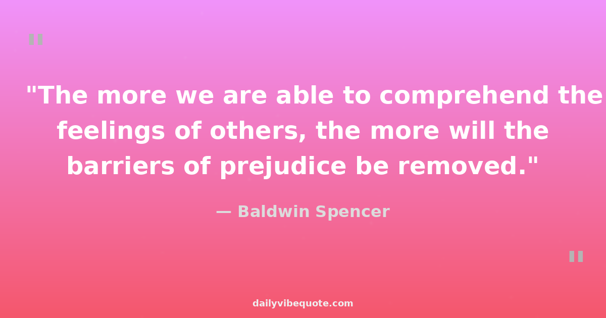 "The more we are able to comprehend the feelings of others, the more will the barriers of prejudice be removed."