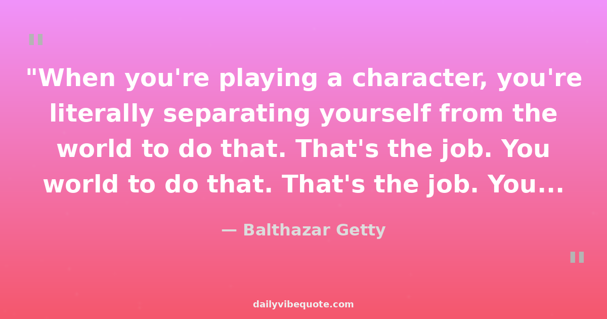 "When you're playing a character, you're literally separating yourself from the world to do that. That's the job. You can't say, "Oh, he wouldn't do that." Well as yourself, you wouldn't do a lot of things."