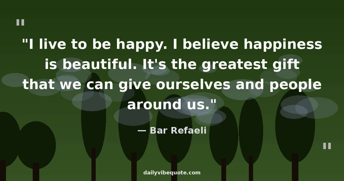 "I live to be happy. I believe happiness is beautiful. It's the greatest gift that we can give ourselves and people around us."