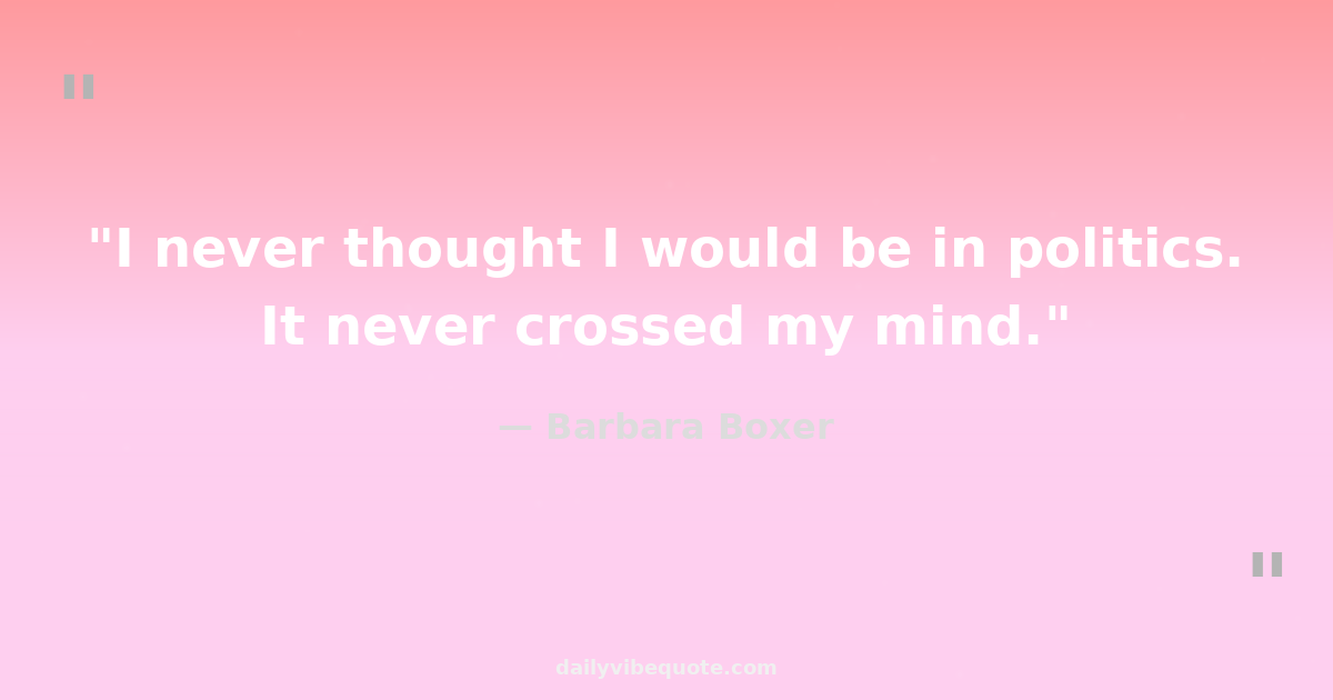 "I never thought I would be in politics. It never crossed my mind."