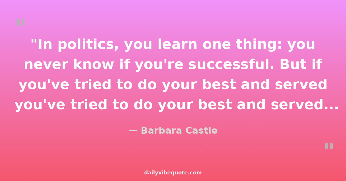 "In politics, you learn one thing: you never know if you're successful. But if you've tried to do your best and served the people, you can always feel proud of that."