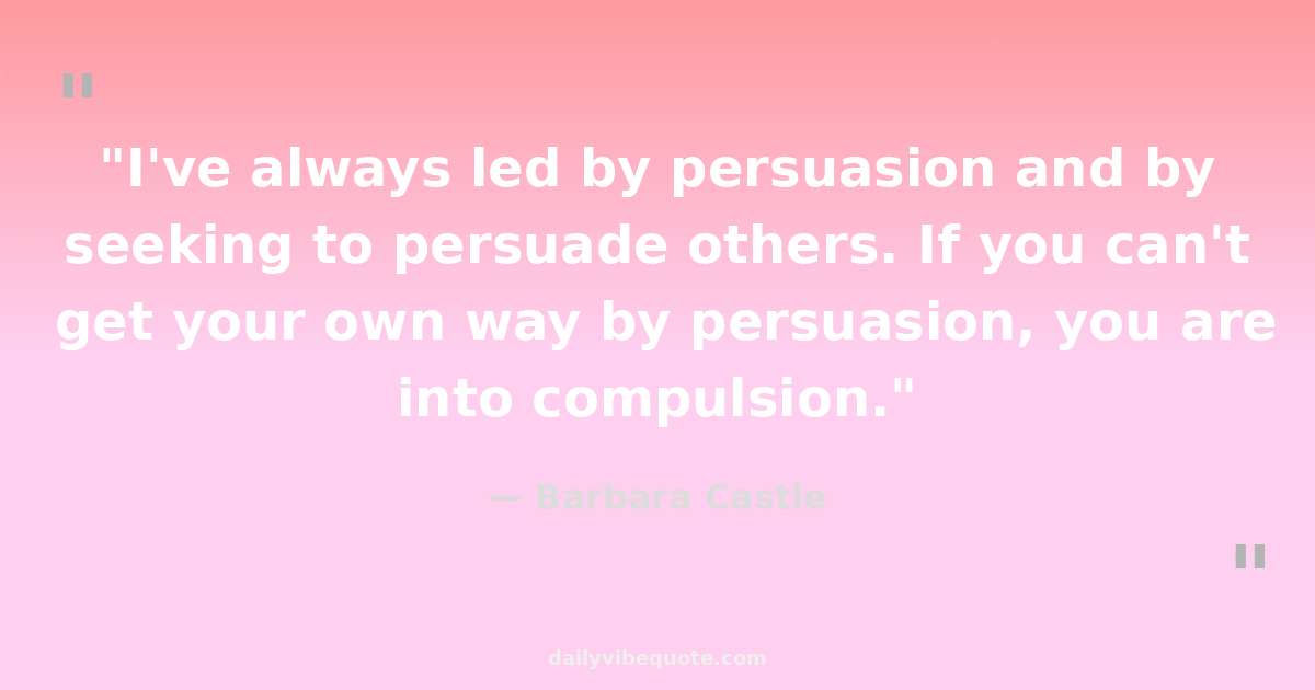 "I've always led by persuasion and by seeking to persuade others. If you can't get your own way by persuasion, you are into compulsion."