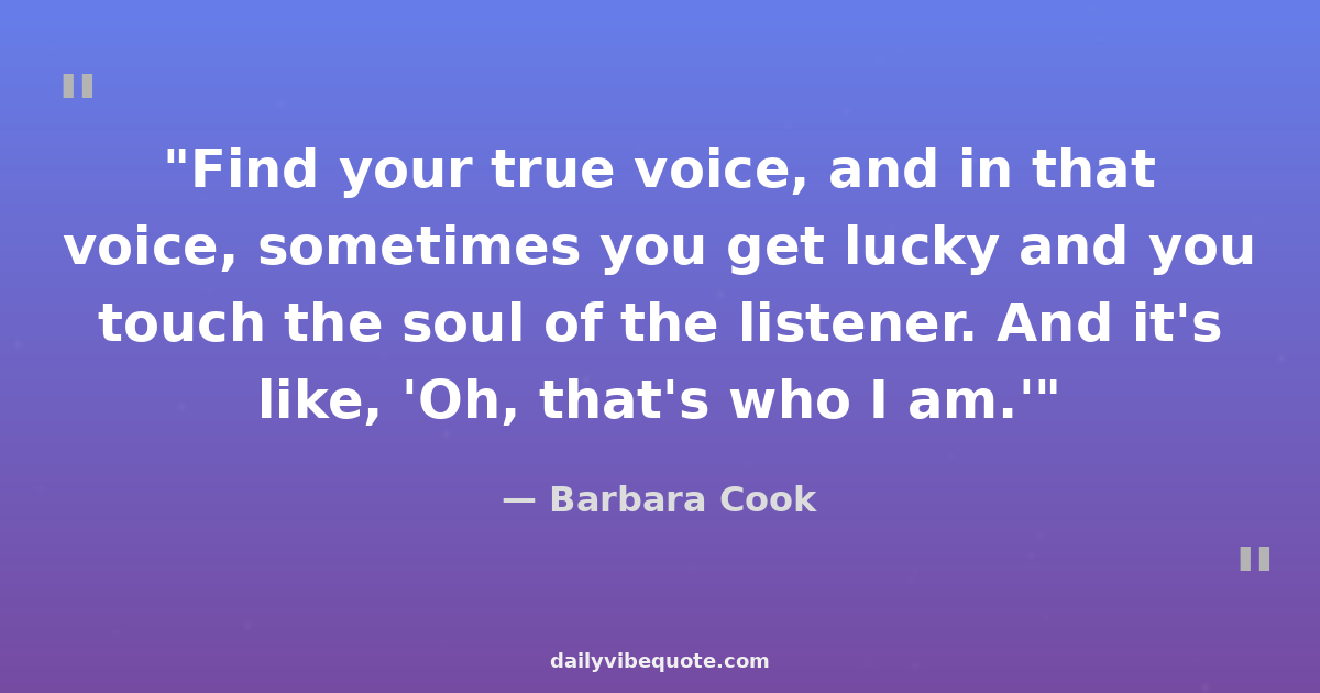"Find your true voice, and in that voice, sometimes you get lucky and you touch the soul of the listener. And it's like, 'Oh, that's who I am.'"