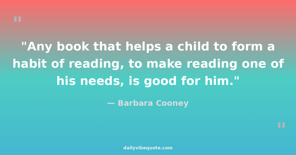 "Any book that helps a child to form a habit of reading, to make reading one of his needs, is good for him."