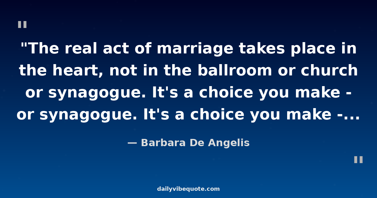 "The real act of marriage takes place in the heart, not in the ballroom or church or synagogue. It's a choice you make - not just on your wedding day, but over and over again - and that choice is reflected in the way you treat your husband or wife."